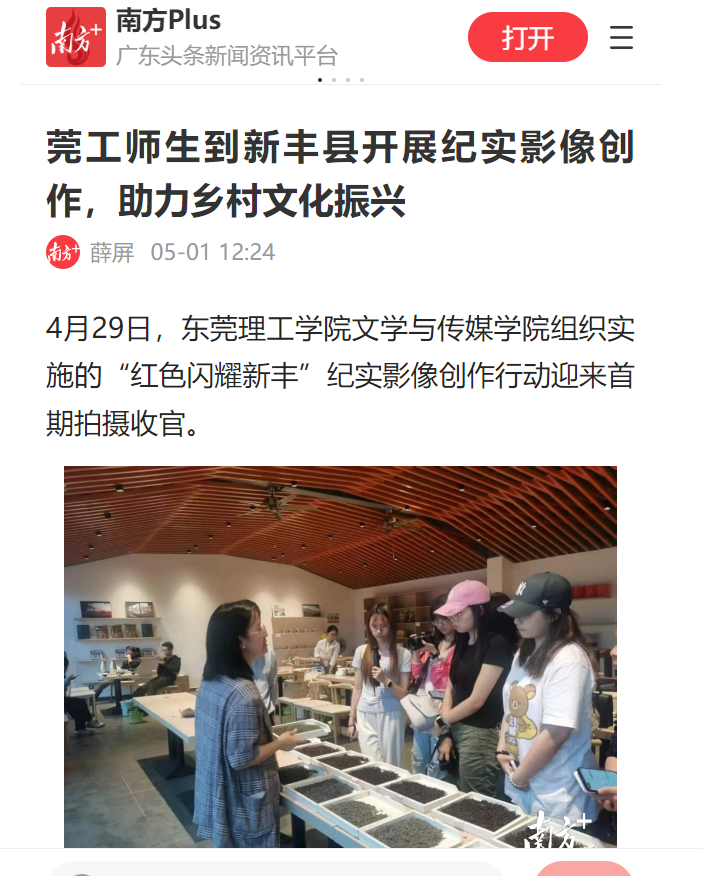 该活动于4月19日在新丰县启动,由40余名师生组建的第一批创作团队深入当地的田间地头采集第一手素材。师生们通过影像记录手段,系统挖掘县域红色文化资源,构建数字化文化档案,助力乡村文化振兴。该活动聚焦“红色基因解码”与“乡村振兴实践”两大主线,通过九大选题立体呈现革命老区的红色底蕴与振兴实践。