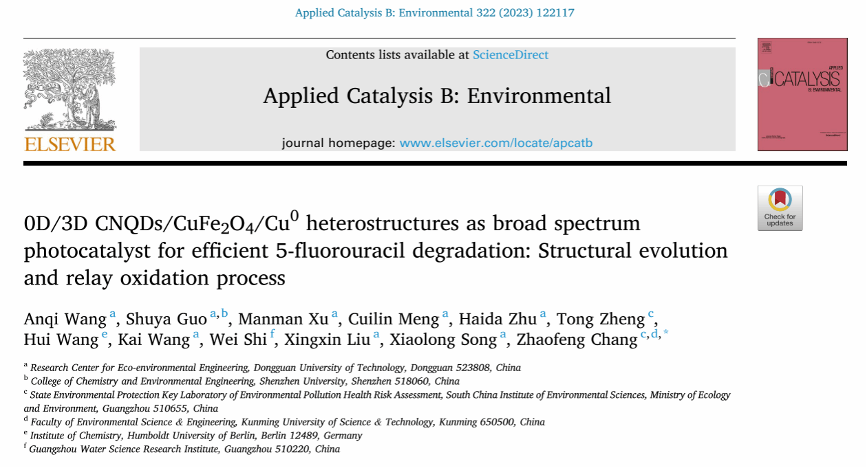 近日,九九精品视频一区在线久久久久久久久久毛片精品美女|国产99久久久久久免费看|中文精品99久久国产|国产69精品久久久久9999|精品久久久久久中文字幕无码|亚洲熟妇无码久久精品国产精品99|精品国产天堂综合一区在线生态环境工程技术研发中心王安祺博士在原位相转变广谱光催化技术领域取得进展,研究成果以“0D/3D CNQDs/CuFe2O4/Cu0 heterostructures as broad spectrum photocatalyst for efficient 5-fluorouracil degradation: Structural evolution and relay oxidation process”为题发表在环境领域国际知名学术期刊《Applied Catalysis B: Environmental上。