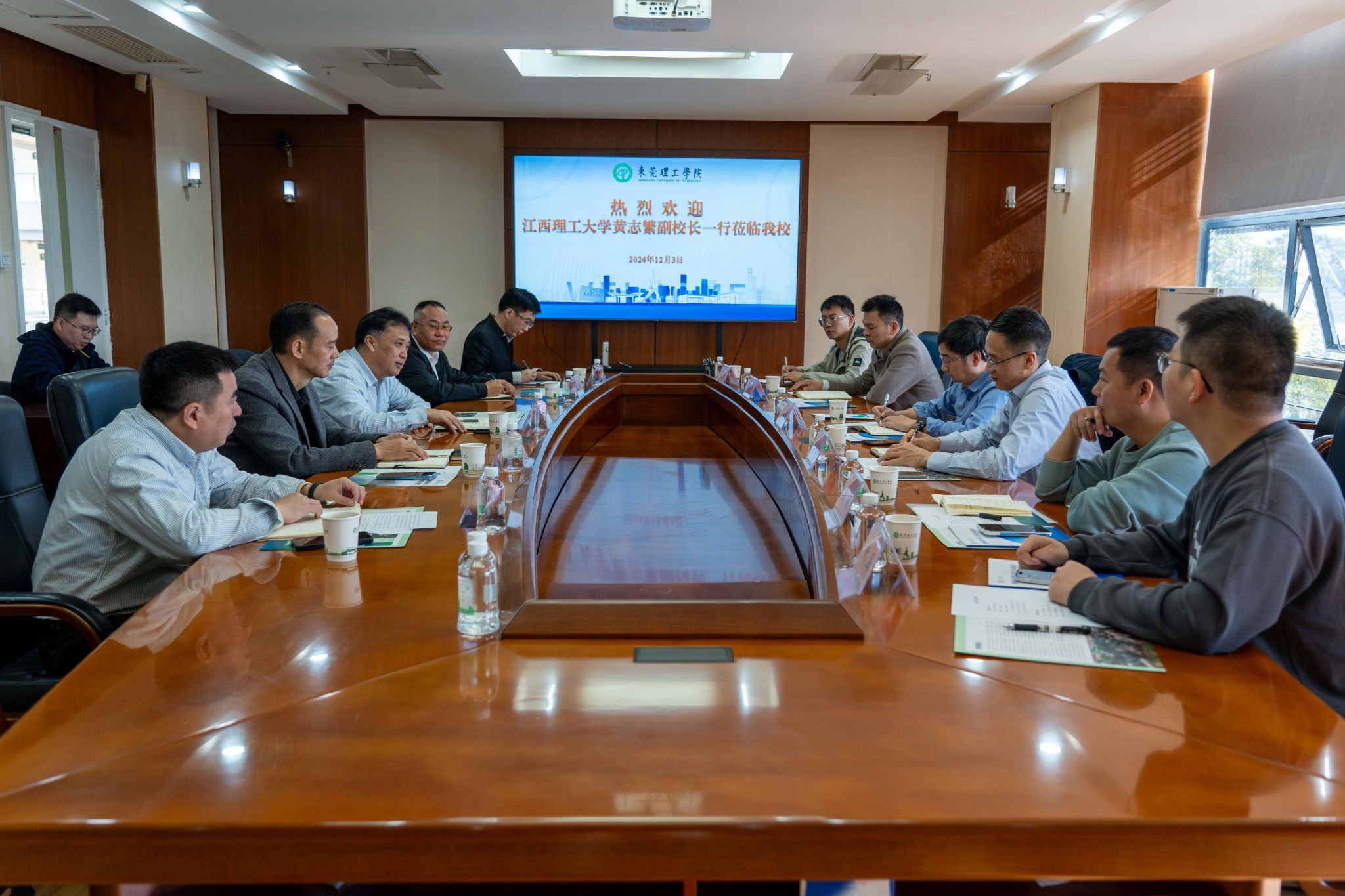 12月3日,江西理工大学党委常委、副校长黄志繁率队来校调研,参观了我校卓越工程师学院产教融合育人成果展、智慧校园运营管理平台、数字装备工程训练中心,实地了解莞工在人才培养、信息化建设等方面的经验做法和工作成果。校党委副书记、校长马宏伟及相关部门负责人与黄志繁一行开展座谈交流。