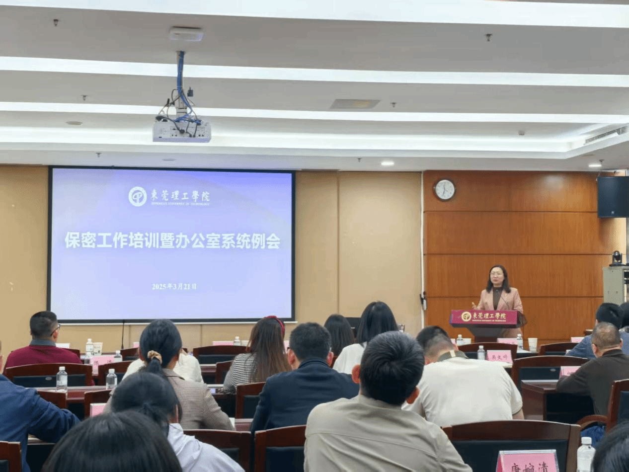 为加强全校办公室系统队伍建设,强化办公室系统人员的保密、印章管理和会务工作等业务能力,促进校院两级办公室业务协同联动,3月21日上午,由党政办牵头,学校2025年第一次办公室系统业务培训在松山湖校区学术会议中心顺利举行。党政办全体工作人员及各二级学院、职能部门办公室负责人参加了培训,培训会议由党政办公室副主任李利平主持。本次特邀了东莞市委机要和保密局专家莅临我校开展保密工作业务培训。