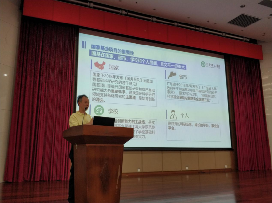 国家杰青基金项目获得者、教育部“长江学者”特聘教授、国务院政府特殊津贴专家沈永明教授为现场的老师们分享了国家自然科学基金申报政策变化的情况、形式审查要点以及申报国家自然科学基金项目的个人经验。他结合自己作为国家自然科学基金项目评委的经验,重点从科学问题属性的填写、回避专家信息录入、人员信息录入及本子的撰写等几个方面详细讲解项目申报书的填写工作,指明了在填报项目的过程中应该特别关注的问题,强调了形式审查要点。最后重点强调要认真对待,尽早做起,多积累成果,加大对外交流,提高申请书质量,在座的老师们受益匪浅。