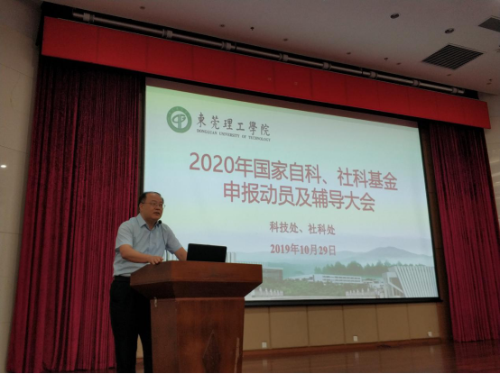 10月29日,学校2020年国家自科、社科基金申报动员及辅导大会在松山湖校区学术会议中心报告厅举行。副校长李忠红、科技处处长范洪波、各二级机构科研院长及百余名学术工作者参会。
