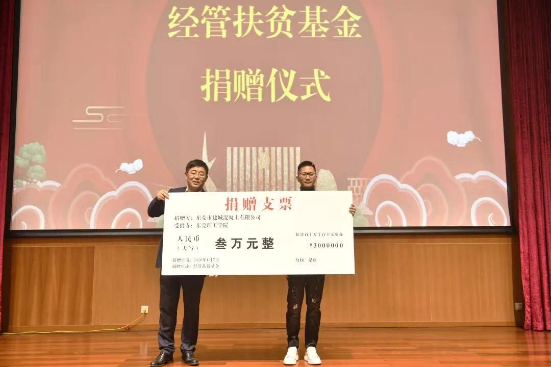 校友工作办公室主任崔学海代表经管学院,接受优秀校友何奋提供的3万元扶贫基金,主要用于经管学院在韶关应山村的对口帮扶工作。