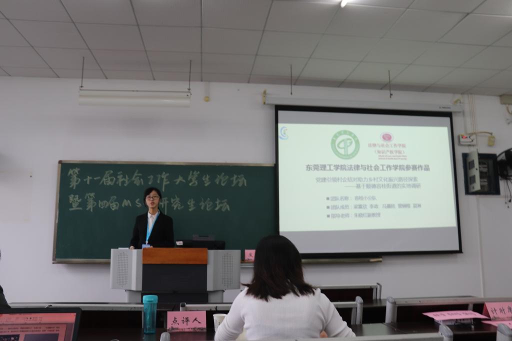 此次论坛,梁富欣同学提交的论文是《党建引领村企结对 助力乡村文化振兴路径探索——基于顺德区容桂街道的实地调研》,论坛期间,主要围绕“新时代乡村振兴与乡村治理”主题就参赛论文进行汇报,运用地区发展模式理论对容桂街道党建引领村企结对,助力乡村振兴模式进行分析,思路清晰、用词严谨,得到了点评老师的肯定与赞扬。