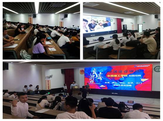 10月10日下午,首场校园宣讲会由中国建设银行股份有限公司东莞市分行联合佛山、中山、云浮、江门等地区招聘负责人在我校学生中心A109开展联合招聘宣讲,来自学院各专业的2020届45名同学参与了本次宣讲。