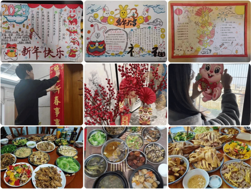 本次系列活动共由三个各具特色的子活动组成。在“福启新岁,前兔似锦”主题活动中,同学们用手抄报和征文的形式,分享自己对新一年的祝福及奋斗目标;在“除旧布新”主题活动中,同学们记录下自己春节前夕的忙碌,用劳动为新春添彩;在“满满的年味,幸福的滋味”主题活动中,同学们以图片分享的形式记录阖家团圆的温馨时刻。活动过程中,大家踊跃投稿,分享新年的喜悦,明确新年新目标与新期待,共赴新征程。
