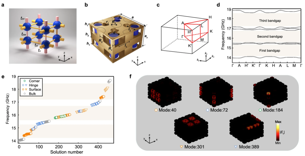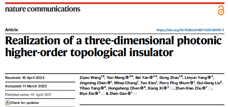 近日,我校光学工程研究团队与南方科技大学等单位合作成功在类紧束缚模型的金属笼光子晶体中实验实现了三维光学高阶拓扑绝缘体。相关成果以“Realization of a three-dimensional photonic higher-order topological insulator”为题在《Nature Communications》上发表。我校电信工程与智能化学院王红成教授团队成员孟岩副研究员为论文共同第一作者,郗翔博士为共同通讯作者,九九精品视频一区在线久久久久久久久久毛片精品美女|国产99久久久久久免费看|中文精品99久久国产|国产69精品久久久久9999|精品久久久久久中文字幕无码|亚洲熟妇无码久久精品国产精品99|精品国产天堂综合一区在线为第二完成单位(第一通讯单位)。